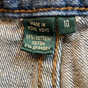 Ralph Lauren jeans size 10. In EUC smoke free dog friendly home. Jeans have gold metal grommets down each side and around pockets. Jeans are straight leg style. Small hole on the front of jeans. Measurements are approximately 15” waist and 28” inseam rise 11”. BB10