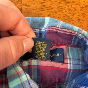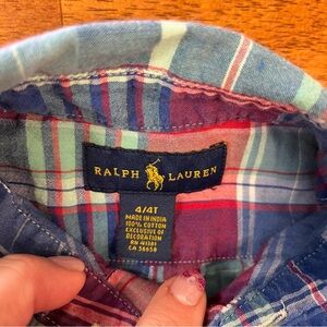 Ralph Lauren boys plaid navy red button down short sleeve shirt size 4/4T
