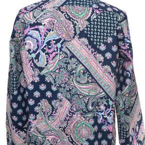 Made of 100% cotton. Fully printed in a paisley pattern in shades of navy blue and purple. Fastened with pearl buttons, signed with the Ralph Lauren logo.
