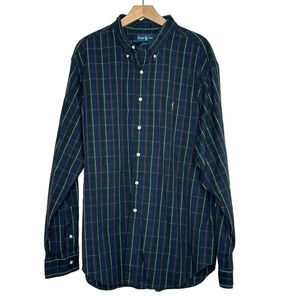 Polo Ralph Lauren button up shirt Classic Fit 18 36/37 Blue Tartan Plaid Flesh Pony