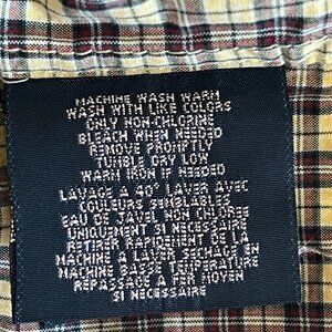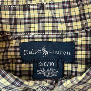 Ralph Lauren boys' buttondown shirt, size small (8/10). Yellow and red plaid. Short sleeves. Classic collared style. Gently worn, in very good used condition. No rips or stains. Machine washable. 100% cotton.
