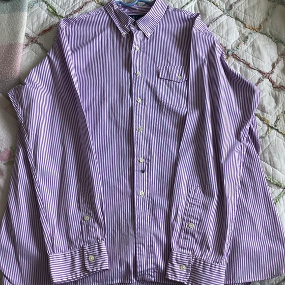 Purple a white striped XXL long sleeve dress shirt. NWOT. 27” across. 30” top to bottom. No flaws that I can see. Bundle and save.