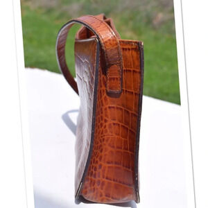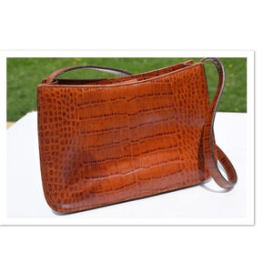 Genuine leather. Croc embossed. Cognac color. Silver tone hardware.