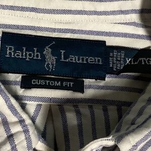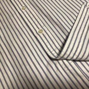 White with light blue/grey stripes. Cotton. I see no flaws. Bundle and save