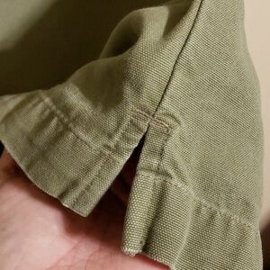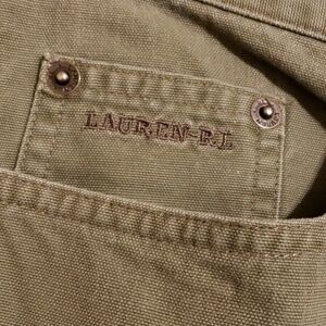 Denim khaki green capri by Ralph Lauren with leather badge on back and embroidered brand on pocket EUC no tears wear or stains size 10