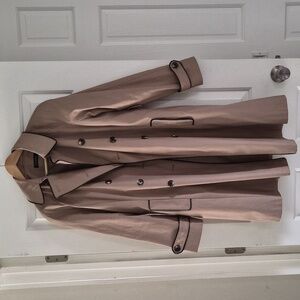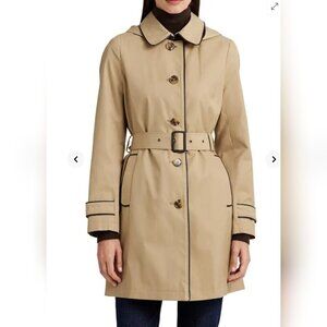 This single-breasted trench coat from Lauren Ralph Lauren is accented with smooth faux-leather details. It features a spread collar, No belt
