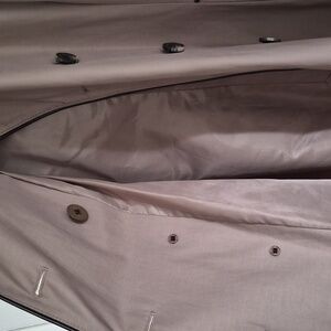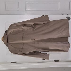 It is fully lined with belted cuffs. The coat has a 35" length (size Medium) and is composed of 57% cotton and 43% polyester.