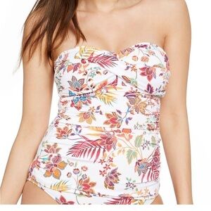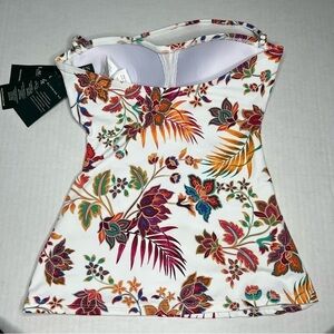 NWT Lauren Ralph Lauren twist tubini swim top in size 0. White with multi color paisley floral and tropical print.