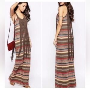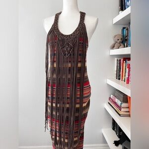 Denim & Supply Ralph Lauren Fringe Maxi Dress Sz medium Crochet Macrame Brown