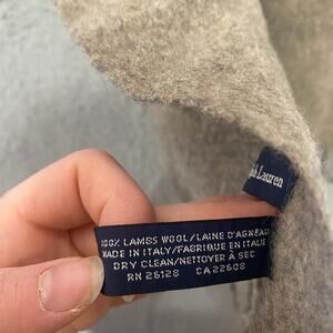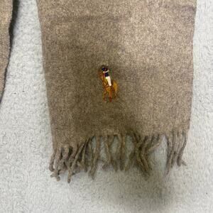 Ralph Lauren gray 100% lambswool scarf Italy embroidered pony fringe 54 in