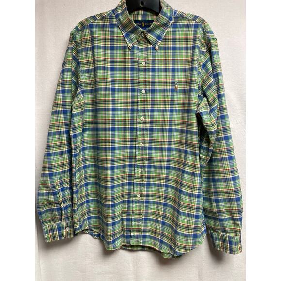 Ralph Lauren green blue white plaid Mens long sleeve button casual shirt Large