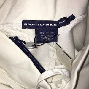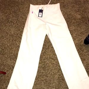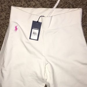 Nwt. Unworn. Size small. Ralph Lauren golf. Cotton side stripe drawstring pants. Wide band waist. Back zipper pocket. Pink logo. Elasticized waist