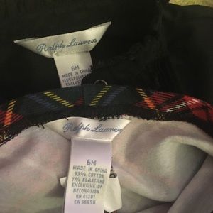 Black Ralph Lauren top with ruffles at the bottom. Small "RL" on the side with matching Ralph Lauren leggings. Brand new without tag. Never been worn, just washed. Size 6m.