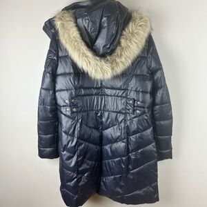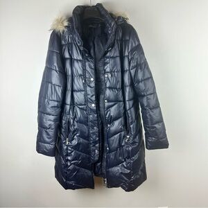In great cond . Mid length puffer with hood. Faux fur trim. Size L