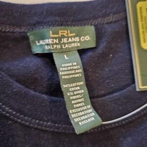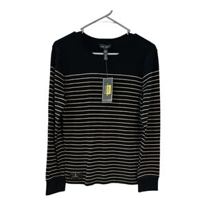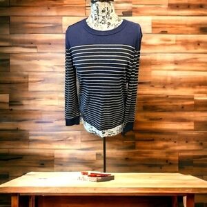 Ralph Lauren navy blue gold stripe LS cotton sweater sz M L NWT