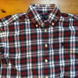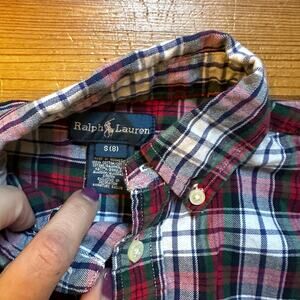 Ralph Lauren navy red green plaid long sleeve button collar shirt SIZE 8
