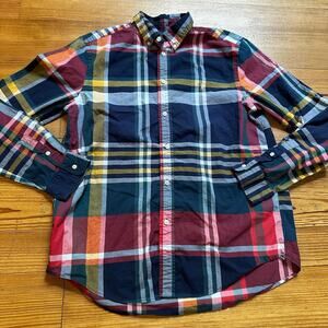 Ralph Lauren navy red yellow plaid pattern long sleeve button up shirt SIZE 18