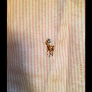 Ralph Lauren pink/white striped knit oxford shirt. Slim fit size 10