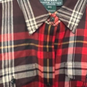 Ralph Lauren plaid front button shirt. Black, red, and yellow in size petite/small. Great condition.