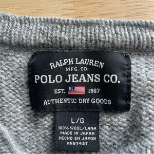 Ralph Lauren polo jeans co vintage 100% wool v-neck Sweater gray 14513