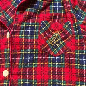Ralph Lauren red blue plaid plaid fleece long sleeve pant sleep set SIZE S