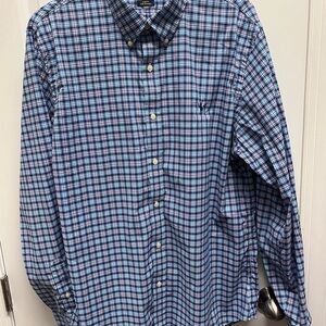 Stylish plaid design with button-down collar. Ideal for casual outings.