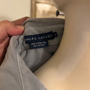 Ralph Lauren short sleeve v-neck button blouse with dual front pockets