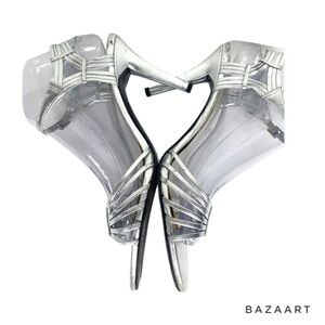 Ralph Lauren silver metallic leather strappy slingback Dress Shoe Sz 8.5.