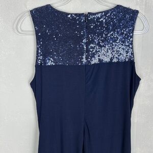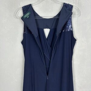 Ralph Lauren size 12 sheath ruched dress navy sequin keyhole stretch knee length