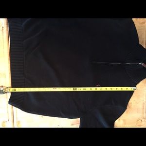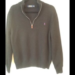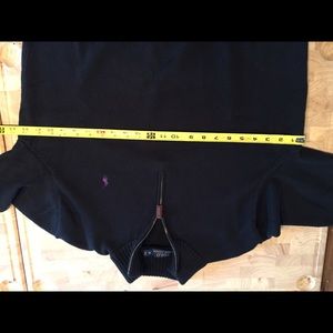 Black Ralph Lauren 1/4 zip sweater in size XL with purple pony. 100% cotton fits a little smaller like a large. Please see pics with tape measure.