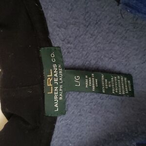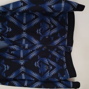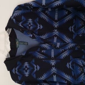 Ralph Lauren southwest printed button down hoodie, pockets, women's size large, blue & black, great condition, runs slightly small.