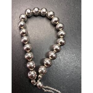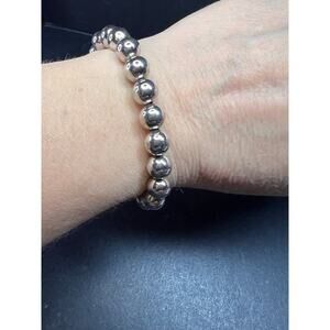 Authentic 925 sterling silver 8mm beads on a bolo chain with two sterling silver heart charms hanging stamped 925 RL Italy. This is possibly not Ralph Lauren but all searches I’ve done say it is Ralph Lauren based on the RL. Measures from about 5.75 to 9.5 inches. Completely adjustable with bolo slide. Total weight is 4.94 grams.
