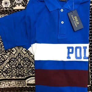 Ralph Lauren blue color stripe custom slim fit polo shirt. for most people better to select one size large.