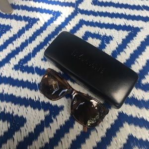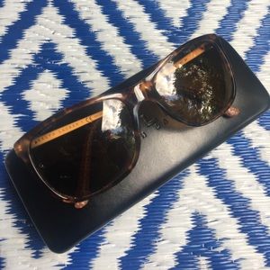 Slightly worn. Brown frames with brown textured sides. Very cute and in style!