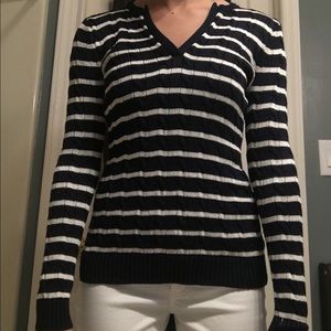 Navy and white sweater. Long-sleeved. Light knitting. XS