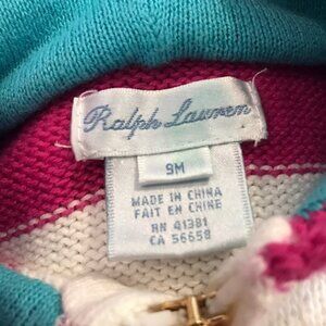 Ralph Lauren baby 9 mos striped sweater cardigan with hoodie and ruffle bottom