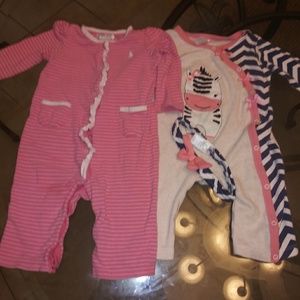Ralph Lauren pink w/ white stripes cotton button up outfit w/ snaps. With free little me zebra outfit w chevron stripes and headband.