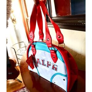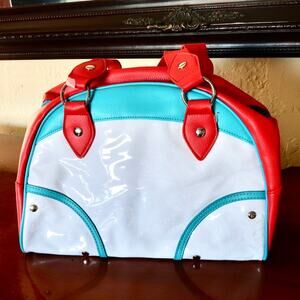 Ralph Lauren top handle bowling bag y2k 2000s color block Turquoise red white