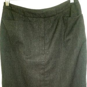 The skirt is a long mid Length skirt with a high waist. It has two large pockets and zipper in the front.