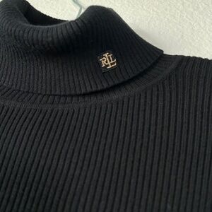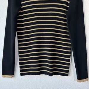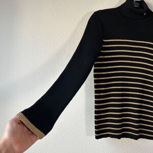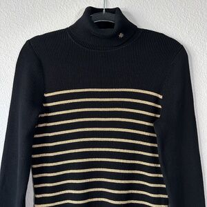 Ralph Lauren women size XL turtleneck Rib sweater black gold stripe cotton