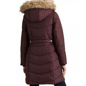 The Ralph Lauren women's Faux-Fur-Trim Hooded Down Puffer Coat in Burgundy is a stylish and warm outerwear option for women in size 3X.