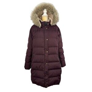 Ralph Lauren women's Faux-Fur-Trim Hooded Down Puffer Coat Burgundy Plus Size 3X