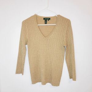 Ralph Lauren women's Gold shimmer V Neck Long sleeve New Year Sweater Medium