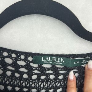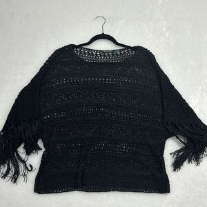Ralph Lauren womens loose knit Black Crochet fringe Sweater size Large / XL