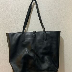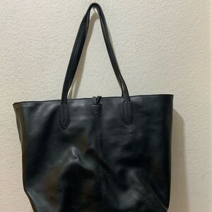 Ralph Lauren Black Leather Tote Bag double handles top zip