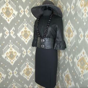 Ralph Lauren Black Label Jet Black Polished Linen Cropped Ruffle Sleeve Jacket