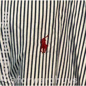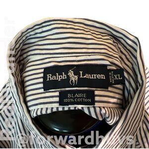 The Ralph Lauren Blaire Fit long sleeve button-down shirt in men's size XL features a classic blue and white striped design.