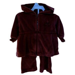 Minnie Wear: Wine Velour 2 Piece Outfit, Ribbon Trim, Zip Front Hoodie & Pants, Machine Wash & Dry.