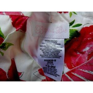 Bonnie Baby: White with Bright Pink Floral Sleeveless Dress, Sleeveless, Front Satin Bow & Back Tie, Sparkle Outline on Flowers, Button Back, Full Skirt, Fully Lined.
