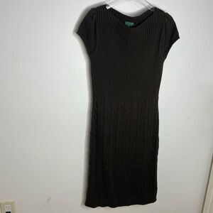 Ralph Lauren Cable Knit Dress Brown Pencil Cashmere Boat Neck Midi Size Medium M